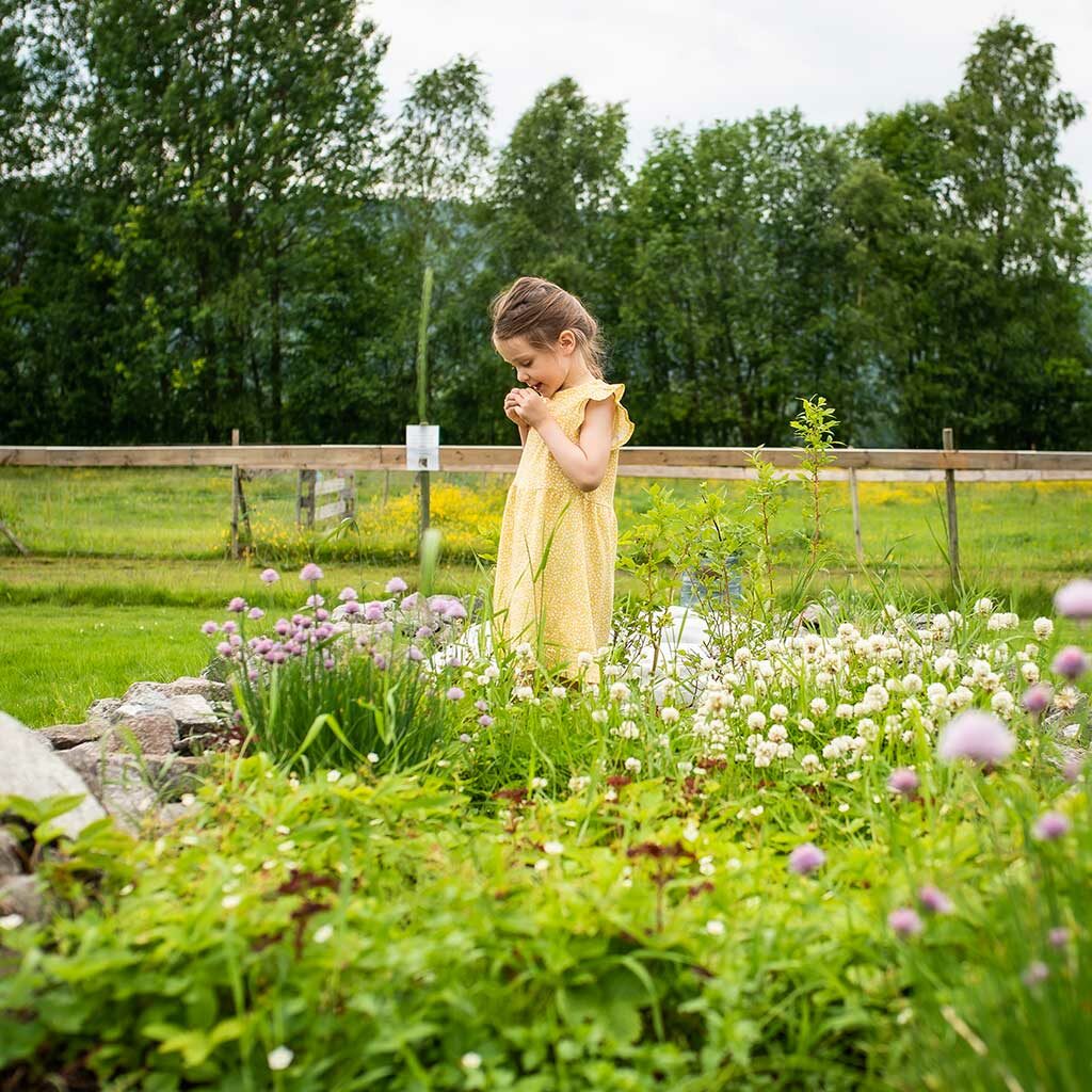 På Klokkertunet kan du si hei og god dag til høner, ender, sauer og geiter … bier og kuer. Er du rolig og stille vil dyrene føle seg trygge med deg og kanskje får du oppleve en nær-snute-opplevelse.