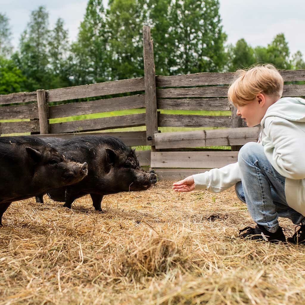 Det kan både hoppes i høyet eller spikres i snekkerboden. Mange syns det er trivelig med natursti, hestekjøring og masse kosing med dyra her.